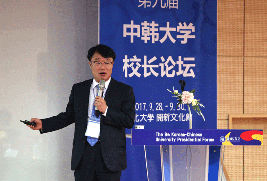 정 총장은 29일 충북대에서 열린 '제9회 한·중대학총장 포럼'에서 '제4차 산업혁명과 대학교육'을 주제로 발표했다. 정 총장은 "급속한 교수학습 환경 변화에 대응하는 국제적 협력이 필요하다"면서 "플랫폼을 통해 학문 간 융합 모듈교육의 국제적 협력과 개방형 온라인 공개강좌(MOOC)의 국제교류를 강화하고, 글로벌 현장실습 지원 등 교수-산업체 전문가 기반 코칭(Coaching) 프로그램 교류를 추진해야 한다"고 강조했다.
