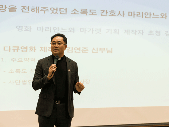 김연준 신부는 다큐멘터리 영화 '마리안느와 마가렛' 기획‧제작자이다. 40여 년간 소록도에서 한센인을 돌보는 데 헌신한 오스트리아 출신 두 간호사 마리안느 스퇴거와 마가렛 피사렉의 삶을 들려주고 영화를 보여줬다.