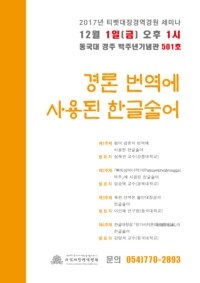 [대학저널 박용우 기자]동국대학교(총장 한태식) 경주캠퍼스 티벳대장경역경원(원장 진옥스님)은 12월 1일 오후 1시 교내 백주년기념관에서 ‘2017 세미나’를 개최한다.