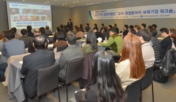 백석대 창업보육센터는 29일 저녁 6시 30분, 천안 신라스테이 미팅룸에서 실험실 창업교수-창업동아리-보육센터기업 및 가족기업 담당자를 초청해 ‘창업이 살길이다’라는 주제로 워크숍을 개최했다.