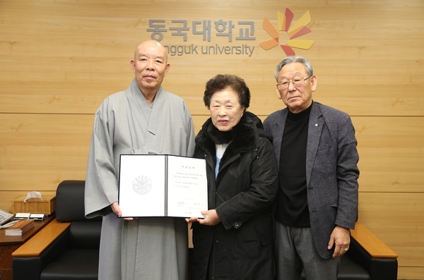 한태식 총장은 “부부의 학교사랑에 감사드린다. 전달해주신 기부금은 현재 계획 중인 비구니 스님들의 기숙사를 건립하는데 소중하게 사용할 예정이다”고 감사의 뜻을 전했다.