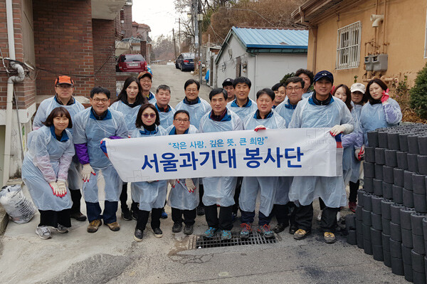 [대학저널 신효송 기자] 서울과학기술대학교(총장 김종호, 이하 서울과기대) 교직원 및 재학생으로 구성된 '서울과기대 봉사단'은 지난 2일 서울시 노원구 상계4동 일대에서 추운 겨울을 홀로 지내시는 홀몸 어르신들과 저소득 가정에 희망의 온기를 전달하기 위해 연탄 나눔 봉사활동을 실시했다.