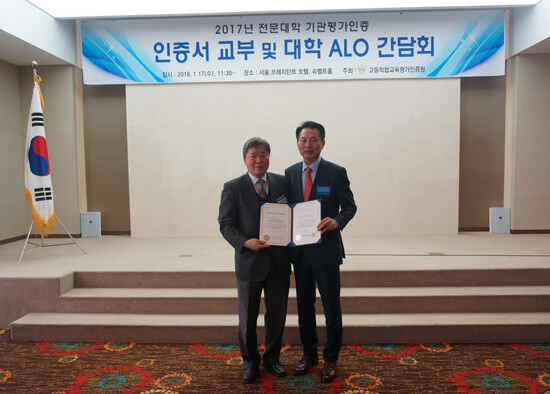 지난 17일 서울 프레지던트 호텔, 슈벨트홀에서 '2017년 전문대학 기관평가인증 인증서 교부 및 대학 ALO 간담회'가 열렸다. 이날 소용철 경기과기대 전략기획처장은 "전 교직원들의 노력과 열정으로 전문대학 기관평가인증 첫해에 인증대학으로 선정돼 매우 기쁘다"고 소감을 전했다.
