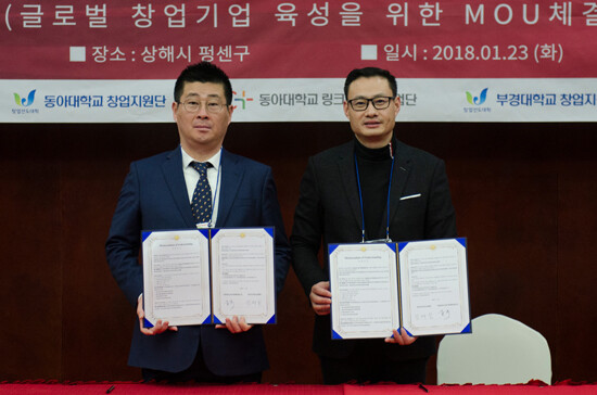 [대학저널 유제민 기자] 동아대학교(총장 한석정) 창업지원단과 링크플러스사업단이 지난 23일 중국 상해에서 중국 하남납백천자산관리유한공사와 업무협약(MOU)을 체결했다.