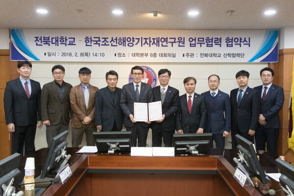 ‘중소형 선박 기자재 품질고도화센터’는 중소형 선박을 시험·연구하고 관련 분야 기업 육성 등을 모색하는 기관이다. 이를 위해 전북대는 지난 8일 한국조선해양기자재연구원(원장 김정렬)과 협약을 맺고 긴밀한 협력을 약속했다.