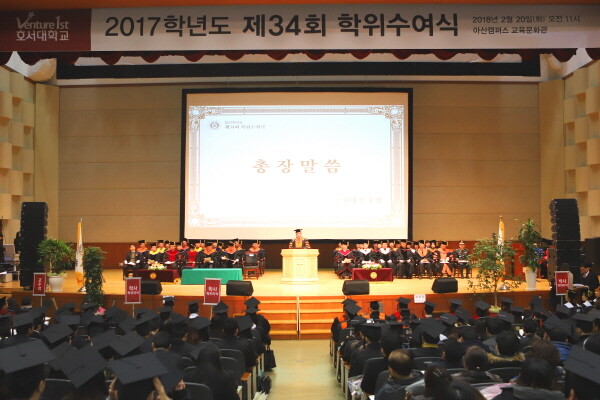 [대학저널 임지연 기자] 호서대학교(총장 신대철)가 20일 호서대 아산캠퍼스 교육문화관에서 2017학년도 제34회 학위수여식을 개최했다.