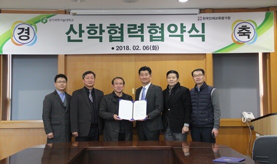 [대학저널 유제민 기자] 경기과학기술대학교는 지난 6일 서울 한국인재교육평가원(원장 서용재)과 산학협력 협약을 체결했다. 이번 협약은 산학협력을 통해 공동의 발전을 도모하는 한편 전문 직업인 양성 및 지역사회 발전 을 위해 체결됐다.