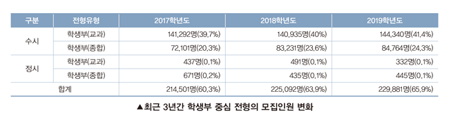 2019학년도 대학입학전형 주요 특징