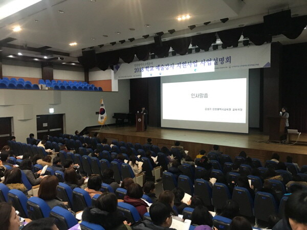 학교 예술강사 지원사업은 문화체육관광부와 교육부의 공동 협력 하에 진행되는 사업으로, 학교 문화예술교육 활성화를 위해 전국 초·중·고등학교에 전문 예술강사를 파견, 지원하는 사업이다. ‘2018 학교 예술강사 지원사업 사업설명회’에는 500여 명의 예술 강사와 학교 관계자가 참석해 문화예술교육사업에 많은 관심을 보였다.