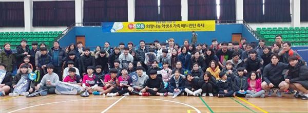 [대학저널 신효송 기자] 목포대학교 체육부와 스포츠산업연구소가 지역 스포츠복지 봉사동아리 '누리보듬'과 공동으로 2월 24일 목포대 체육관에서 ‘누리보듬 희망나눔 학생&가족 배드민턴 축제’를 개최했다.
