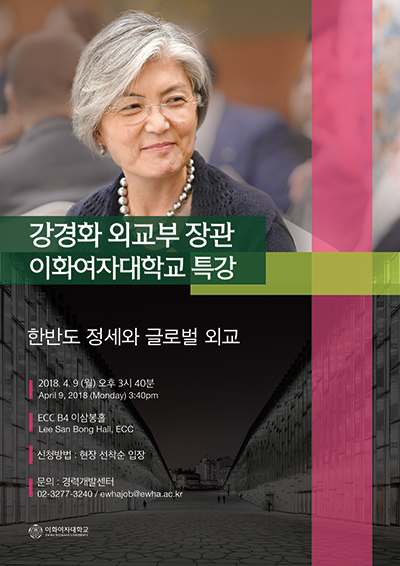[대학저널 신효송 기자] 이화여자대학교(총장 김혜숙)가 오는 9일 오후 3시 40분 이화여대 이삼봉홀에서 강경화 외교부 장관을 초청해 ‘한반도 정세와 글로벌 외교’를 주제로 특강을 진행한다.