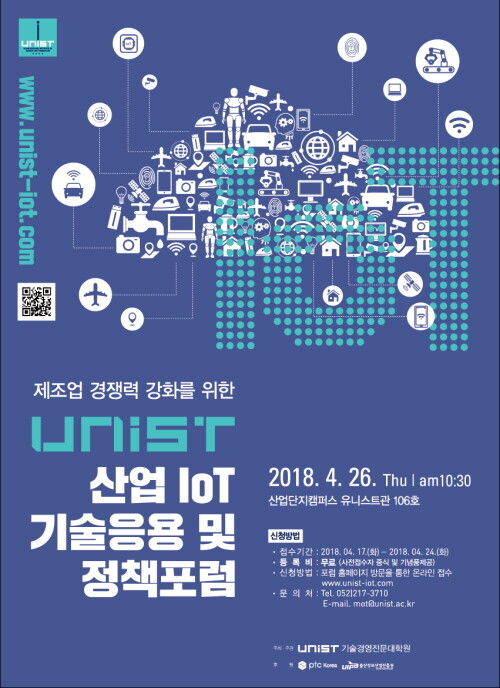 UNIST 산업IoT 포럼은 관심 있는 사람 누구나 참가 가능하다. 참가 신청은 오는 17일부터 24일까지 온라인(www.unist-iot.com)으로 받는다. 관련 문의는 UNIST 기술경영전문대학원(052-217-3709)으로 하면 된다.