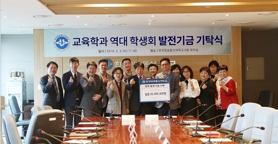 [대학저널 임승미 기자] 한국방송통신대학교(총장 류수노, 이하 방송대)는 지난 2일 ‘교육학과 역대 학생회 발전기금 기탁식’을 개최했다. 교육학과 역대 학생회는 방송대 대학본부 본관 6층에서 열린 이번 발전기금 기탁식에서 그간 학생회에서 모금해 온 학과 기금 중 3000만 원을 기탁했다.