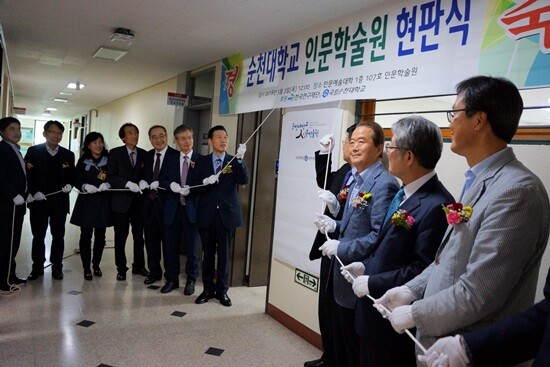 [대학저널 임승미 기자] 순천대학교(총장 박진성)는 3일 순천대 인문예술대학에서 박진성 총장을 비롯해, 허상만 전 총장, 김길수 인문예술대학장, 이종범 한국학호남진흥원장 등 50여 명이 참석한 가운데 인문학술원(원장 강성호) 현판 제막식을 개최했다.