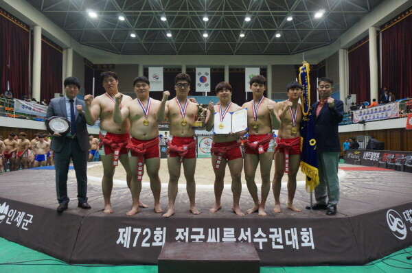[대학저널 임지연 기자] 대구대학교 씨름부(감독 최병찬)가 지난 4월 26일부터 5월 3일까지 강원도 인제실내체육관에서 열린 ‘제72회 전국씨름선수권대회’ 대학부 단체전 우승으로 지난해에 이어 대회 2연패라는 위업을 달성했다.