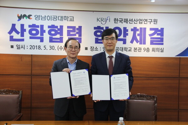 [대학저널 임지연 기자] 영남이공대학교(총장 박재훈)가 지난 30일 영남이공대 본관 9층 회의실에서 한국패션산업연구원(원장 주상호)과 산학협력 협약을 체결했다.