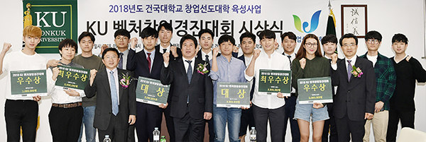 [대학저널 신효송 기자] 건국대학교(총장 민상기)가 5월 30일 건국대 행정관 접견실에서 ‘2018 KU 벤처창업경진대회’ 시상식을 개최했다.