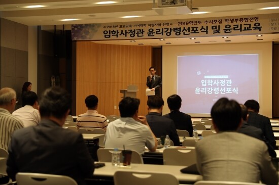 전임 및 교수(위촉) 입학사정관 등 50여 명이 참가한 가운데 이뤄진 이날 선포식에서는 윤리강령 준수 서약, 위촉장 수여, 윤리교육 등이 진행됐다.