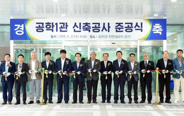 부경대는 27일 부경대 대연캠퍼스 공학 1관 1층에서 김영섭 총장 등이 참석한 가운데 공학 1관 준공식을 개최했다. 부경대는 용당캠퍼스 공과대학 11개 학과를 이전하기 위해 총사업비 311억 원을 투입, 2015년 11월부터 공학 1관 공사를 시작해 완공했다.