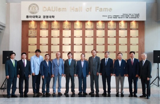 [대학저널 오혜민 기자] 동아대학교(총장 한석정) 경영대학(학장 최형림)은 ‘DAUist GIFTs(다우이스트 기프트)’ 발전기금 릴레이 기부자 명예의 전당을 조성해 지난 18일 동아대 부민캠퍼스 경영대학 로비에서 ‘DAUism Hall of Fame’ 제막식 행사를 열었다.