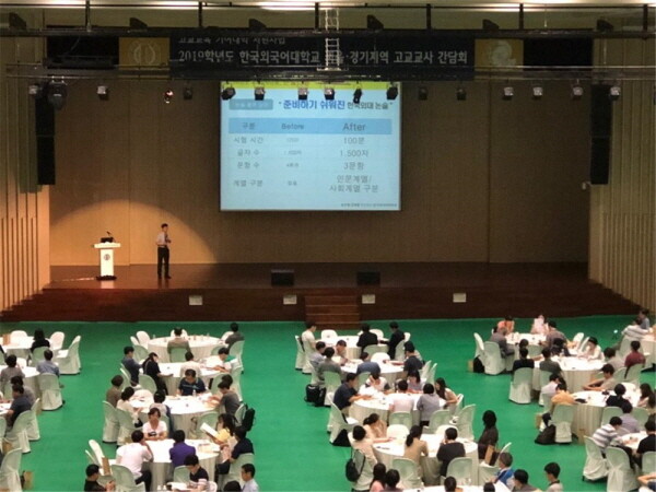 [대학저널 임지연 기자] 한국외국어대학교(총장 김인철) 입학사정관실이 지난 18일 한국외대 서울캠퍼스 오바마홀에서 ‘서울·경기지역 고교 교사 간담회’를 개최했다.