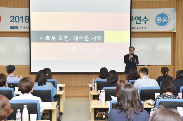 [대학저널 임지연 기자] 이재정 경기도교육감이 30일 수원 보훈교육연구원에서 진행 중인 ‘2018 교육전문직 임용예정자 직무연수’에서 특강을 하고, 연수생들과 소통의 시간을 가졌다.