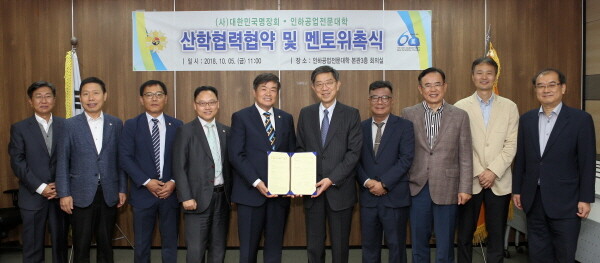[대학저널 최진 기자] 인하공업전문대학(총장 진인주, 이하 인하공전)이 5일 인하공전 본관 회의실에서 (사)대한민국명장회(회장 김대인)와 산학협력 협약을 맺었다.