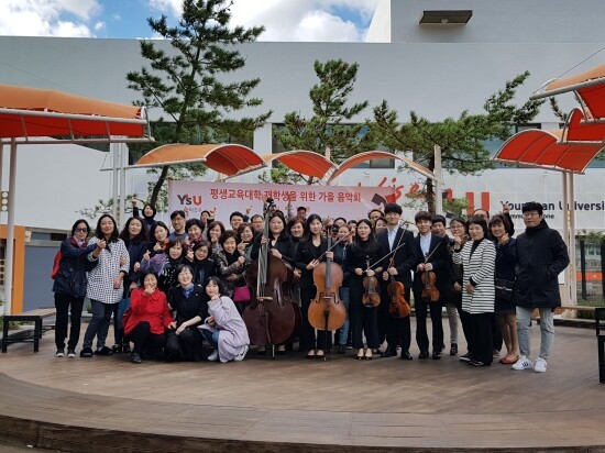 [대학저널 오혜민 기자] 와이즈유(영산대학교, 총장 부구욱) 평생교육대학(학장 심미경)이 지난 27일 해운대캠퍼스 M동 커뮤니티존에서 ‘평생교육대학 재학생을 위한 가을음악회’를 개최했다.