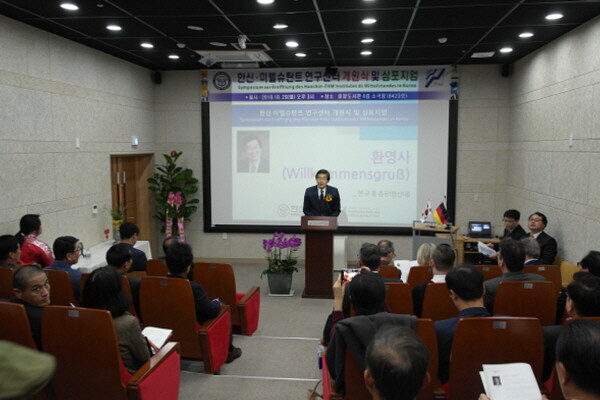 [대학저널 임지연 기자] 한신대학교(총장 연규홍)가 29일 한신대 오산캠퍼스 중앙도서관 4층 소극장(6423호)에서 ‘한신·미텔슈탄트 연구센터’ 개원식과 심포지엄을 개최했다.