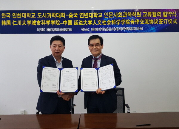 [대학저널 임지연 기자] 인천대학교(총장 조동성) 도시과학대학(학장 박주문)은 10월 30일 중국 연변대학 인문사회과학학원 및 공학원에 방문해 상호 국제교류에 관한 협약을 체결했다.