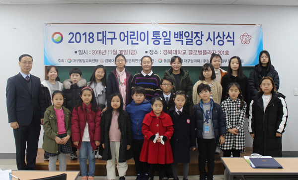 [대학저널 김등대 기자] 경북대학교(총장 김상동) 평화문제연구소(소장 정희석)와 대구통일교육센터가 공동으로 11월 30일 경북대 글로벌플라자에서 ‘2018 대구 어린이 통일 백일장’ 시상식을 개최했다.