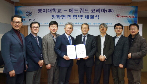 명지대 양진승 공과대학 학장은 “건실하고 좋은 기업문화를 가지고 있는 에드워드 코리아는 모든 재학생들이 입사를 희망하는 회사 중 하나다. 이러한 우수한 회사가 매년 1000만 원의 산학장학금을 명지대 기계공학과에 지급 협약하게 돼 기쁘다”며 “협약을 통해 양 기관의 관계가 더욱 긴밀해질 것이며, 명지대는 우수한 인재 양성을 위해 힘쓸 것”이라고 말했다.