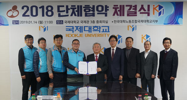 전국대학노동조합 국제대지부는 "지난 2016년 개교 이후 첫 단체협약을 통해 장기간 고정돼 있던 근로 조건들을 개선했고, 연이어 두 번째 단체협약까지 체결하면서 직원들의 근무 만족도 향상과 대학의 경쟁력 강화가 기대된다"고 말했다.