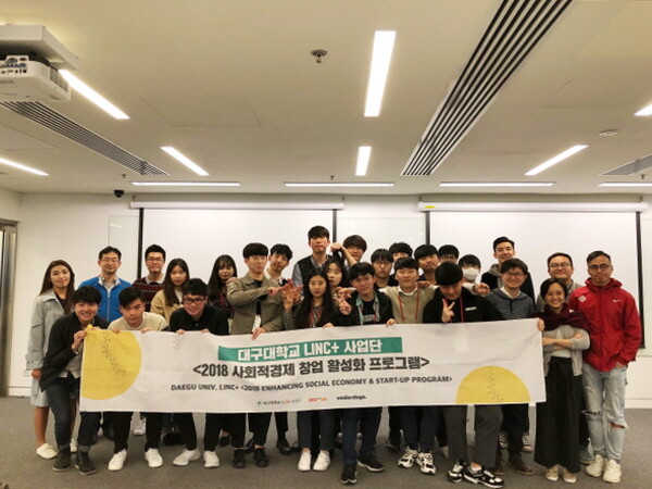 대구대 LINC+사업단(단장 장중혁)은 2018년 10월부터 올해 1월까지 사회적 경제 활성화 프로그램을 잇따라 운영했다. 주요 프로그램으로는 창업 선배들과 경험을 나누는 토크콘서트, 창업에 관심을 가진 학생들이 아이디어를 겨루는 아이디어 발굴 캠프, 국내·외 사회적 경제 현장을 직접 찾는 사회적 기업 탐방 및 해외 창업 캠프 등이다.