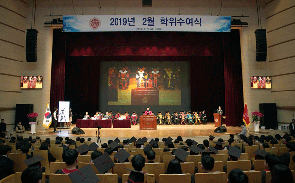 학위수여식에서는 김상동 총장이 박사 전원과 석사 대표들에게 학위기를 직접 전달했다. 또 부총장과 소속 학장은 학사 대표들에게 스톨을 직접 걸어주며 그간의 노고를 격려했다.
