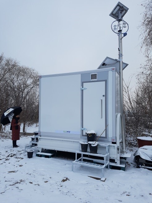 연구팀은 먼저 변기 구조 변형을 통해 소변과 대변이 내려가는 부분을 물리적으로 분리시키고 별도의 공간에 각각 저장해 액비와 퇴비로 생산이 가능케 했다. 또한 화장실 유지관리에 필요한 에너지를 자가 발전으로 공급하기 위해 태양전지 패널과 풍력발전을 설치했다. 추가적으로 세면대에 빗물 이용 시설을 설치해 물을 공급함으로써 수자원 활용성을 높였다.