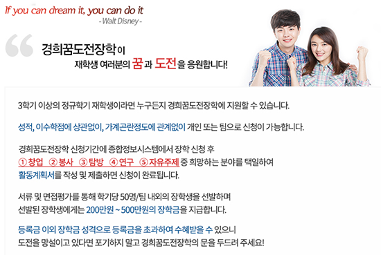 장학제도 역시 홈페이지를 통해 종류와 선발기준을 미리 숙지할 것! 장학금 종류에 따라 학년 제한이 있기도 하며, 충족 요건이 변경되는 경우도 있다. 장학금은 성적우수장학금 외에도 학교별로 다채로운 제도가 마련돼 있으니, 자신에게 맞는 혜택을 상세히 살펴보도록 하자.