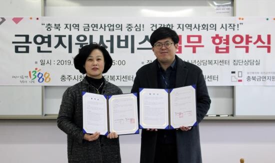 한편 충북금연지원센터는 보건복지부의 지원을 받아 운영하고 있는 기관으로 시간적 제약과 사회적 편견 등의 이유로 보건소 등 기존 금연 서비스를 이용하기 어려운 위기청소년, 여성, 대학생, 장애인, 소규모 사업장 근로자에 특성화된 서비스를 제공하고 있다. 또 중증고도 환자를 대상으로 한 4박5일 전문캠프 및 충북대병원 입원환자를 대상으로 서비스를 실시하고 있다.