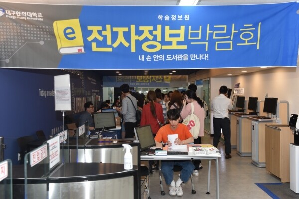 [대학저널 오혜민 기자] 대구한의대학교(총장 변창훈) 학술정보원은 지난 16일 학술정보관 창의융복합멀티플렉스에서 국내외 전자정보 자료 제공에 따른 홍보 및 자료이용 방법 안내를 위한 2019년도 전자정보 박람회를 개최했다.