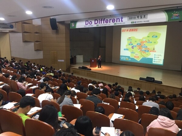 창원대 기초교육원(원장 김영호)이 주관한 이번 특강에서 박 시장은 ‘Do Different!’라는 주제로, 실패를 통해 한 걸음 더 나아갈 수 있었던 본인의 진솔한 이야기를 통해 청춘의 도전정신과 패기의 중요성을 강조했다.