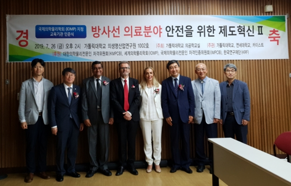 한편 지난 7월 26일 가톨릭대학교 성의교정 의생명산업연구원에서 개최된 ‘국제의학물리전문인 교육기관 인준식’행사에는 연세대 윤영철 원주부총장, 가톨릭대 김성윤 의과대학장, 카이스트 박현욱 부총장, IOMP 수석부회장 겸 차기회장 John Damilakis, IOMP 교육기관 인증위원회 위원장 Arun Chougule, IOMP 사무총장 Virginia Tsapaki, 이종걸 국회의원, KMPCB 집행위원회 박찬일 위원장 등이 참석했으며, 연세대는 윤영철 원주부총장이 직접 인증서를 받았다.