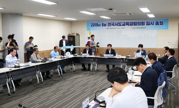 전국시도교육감협의회(회장 김승환, 이하 협의회)는 7일 2019대한민국교육자치콘퍼런스 개막식에 앞서 임시총회를 갖고, 교육자치와 분권을 위해 교육부와의 신뢰 관계를 전면 재검토하겠다는 입장문을 발표했다. 또한 교육개혁과 교육분권을 실현하겠다는 정부의 약속을 신속히 이행할 것을 촉구했다.