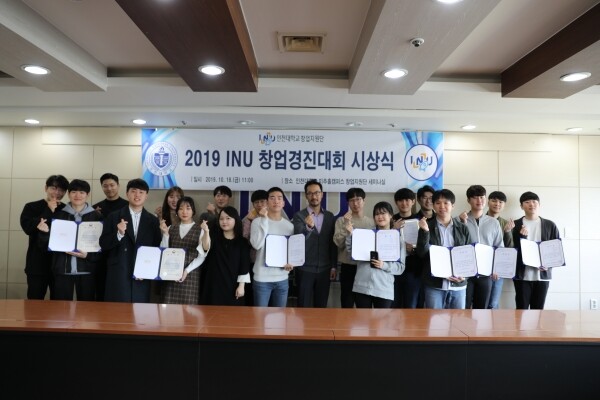 2019 INU 창업경진대회는 인천대 창업지원단과 인천지방중소벤처기업청이 공동주관 했다. 인천대 학생을 대상으로 8월 28일부터 9월 27일 약 한달 동안 모집해 총 27개팀이 신청 접수했으며, 서류 및 발표평가 과정을 거쳐 총 우수 10개팀을 선정했다.