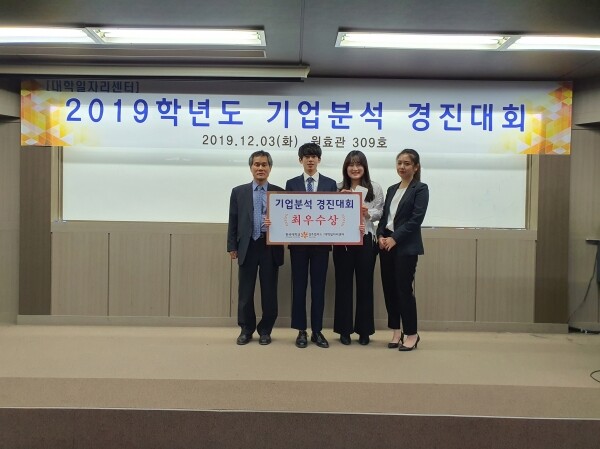 최우수상을 수상한 ‘렛츠코레일’ 팀장 윤범수(호텔관광경영학부 4학년) 씨는 “막연히 입사를 희망하는 기업이었는데, 기업분석경진대회에 참여하다 보니 그 기업의 경쟁력과 보완점 등을 알 수 있어, 앞으로 희망 기업을 선택하는 데 많은 도움이 됐다”라며 “이번 분석자료를 토대로 향후 입사지원서 작성 및 면접에 많은 도움이 될 것 같다”고 말했다.