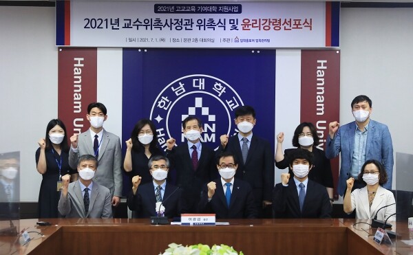 [대학저널 오혜민 기자] 한남대학교(총장 이광섭)는 2022학년도 대입 교수위촉사정관 위촉식과 입학사정관 윤리강령 선포식을 하고, 윤리서약과 전문성강화 교육 등을 온라인으로 실시했다고 1일 밝혔다.