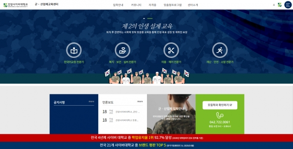 [대학저널 이승환 기자] 건양사이버대학교는 군인, 군무원, 산업체 재직자들의 입학지원과 절차, 학과소개 및 장학혜택을 원스톱으로 확인할 수 있는 군산업체교육센터를 개설했다고 24일 밝혔다.