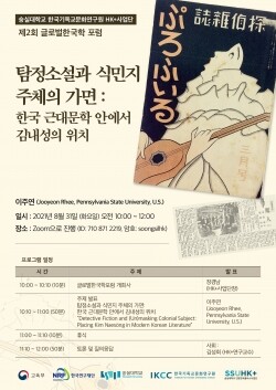 제2회 글로벌한국학 포럼은 이주연 펜실베이니아 주립대 교수가 발표자로 나서 근대 한국 탐정소설의 대표적 작가인 김내성의 문학사적 위치를 트랜스내셔널 관점에서 조명하고, 그의 작품을 ‘가면’이라는 모티브로 분석한다. 또한 식민지 상황에서의 탐정문학의 의미를 살펴본다.