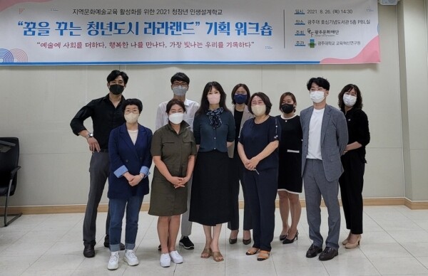 이에 따라 광주대 교육혁신연구원은 지난 26일 대학 호심기념도서관에서 ‘꿈을 꾸는 청년도시 라라랜드’ 기획 워크숍을 개최하고, 교육혁신연구원이 추진해온 지역 문화예술 교육 및 문화예술도시 광주 위상 강화를 위한 업무협약을 바탕으로 후속 사업을 기획, 운영 강사들을 대상으로 진행했다.