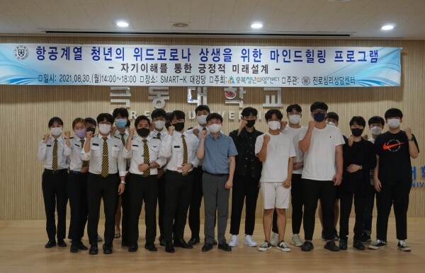 [대학저널 오혜민 기자] 극동대학교(총장 류기일)는 진로심리상담센터가 지난 30일 대학 SMART-K 테크센터 1층 대강당에서 항공운항학과 학생 및 졸업생이 함께 참여하는 ‘위드(with)코로나 대비 마인드힐링 상담프로그램’을 실시했다고 31일 밝혔다.