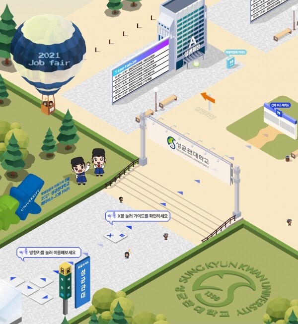 [대학저널 오혜민 기자] 성균관대학교(총장 신동렬)는 1~15일 온라인 가상공간인 메타버스를 활용해 온라인 취업박람회(JOB FAIR)를 연다고 1일 밝혔다.